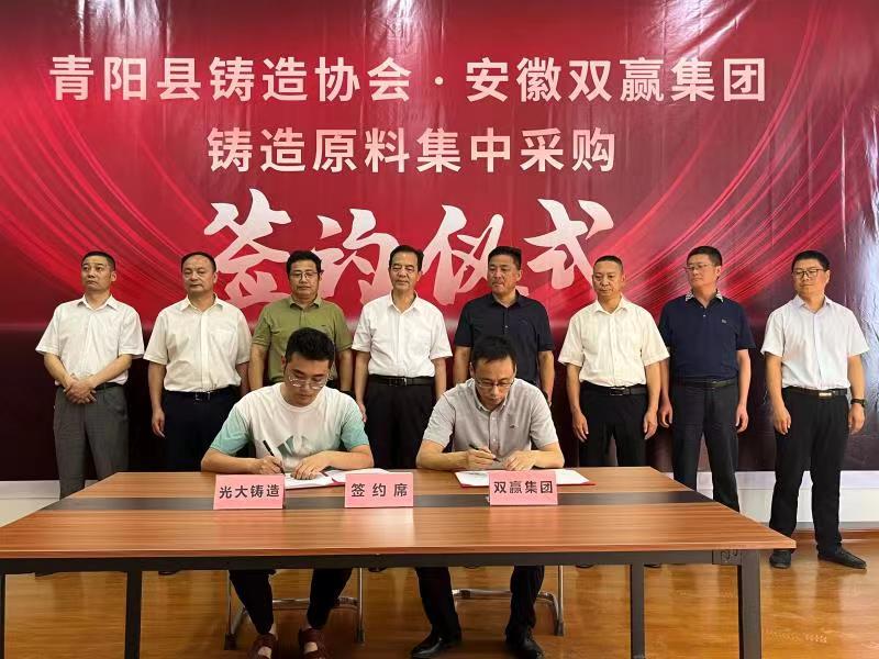 調(diào)研期間,汪斌一行見證了青陽縣鑄造協(xié)會與雙贏集團青陽公司鑄造原料集中采購簽約儀式,此次簽約企業(yè)十余家,簽約金額超億元。