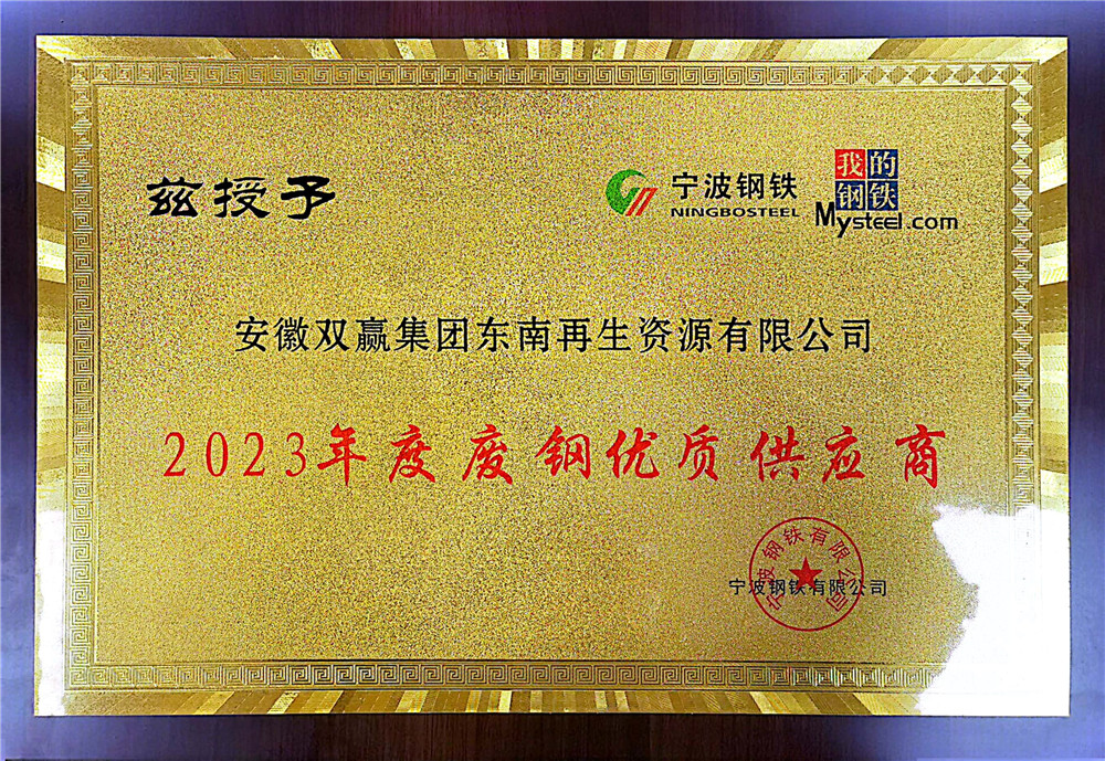 9月22日,2023年寧波廢鋼市場核心企業(yè)研討會暨2023年度寧波鋼鐵“廢鋼優(yōu)質(zhì)供應(yīng)商”表彰大會在寧波召開。會上,寧波鋼鐵有限公司舉辦了廢鋼供應(yīng)商表彰大會,安徽雙贏集團東南再生資源有限公司榮獲寧波鋼鐵“2023年度廢鋼優(yōu)質(zhì)供應(yīng)商”稱號。會議還以“現(xiàn)階段廢鋼市場的變化趨勢及未來的前景發(fā)展”為主題,聚焦“行業(yè)遠景與政策環(huán)境”研討。
